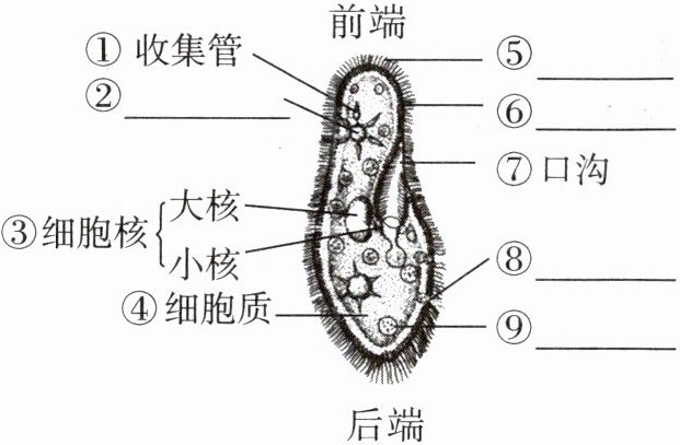(2)纤毛 表膜 食物泡 伸缩泡、收集管