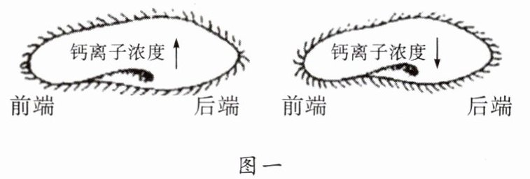 (2) 研究者发现草履虫纤毛摆动的方向和细胞内的钙离子浓度有密切关系,结果如图一: