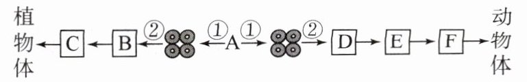 D解析:过程①表示细胞分裂,其结果是细胞数目增多;过程②表示细胞分化,其结果是形成组织,A 错误。植物体的主要组织有保护组织、分生组织、薄壁组织、输导组织、机械组织;动物体的基本组织有上皮组织、结缔组织、肌肉组织、神经组织,它们各自具有不同的功能。可见,B 是植物体的组织类型,而 D 是动物体的组织类型,类型不相同,B 错误。绿色开花植物的六大器官包括营养器官(根、茎、叶)和生殖器官(花、果实、种子)。血液由血细胞和血浆组成,是一种流动的结缔组织。可见,根属于 C 器官层次,而血液属于 D 组织层次,C 错误。动物体的结构层次由微观到宏观依次是:细胞→组织→器官→系统→动物体。结合题图可知,F 属于系统这一结构层次,D 正确。