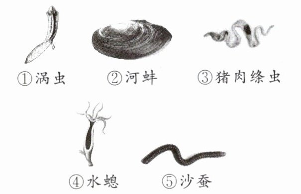 (填序号)属于扁形动物,身体背腹扁平,呈两侧
