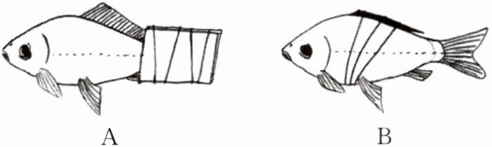 14. (科学探究)在探究“鱼鳍在游泳中的作用”时,生物兴趣小组选择了捆扎鱼鳍的方法进行探究,下图分别表示他们对鱼的某种鳍进行处理的方法,请回答下列问题。