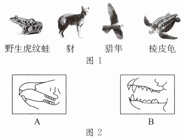 (2)豺属于哺乳动物,所以符合哺乳动物牙齿特征的是B图,具有尖锐锋利的犬齿。