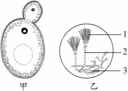 (填“甲”或“乙”)。(3)图中能进行出芽生殖的生物是