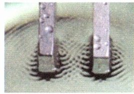 (1)将被敲击后正在发声的音叉轻轻触及水面,水面激起波纹(如图所示),这说明发声的音叉在