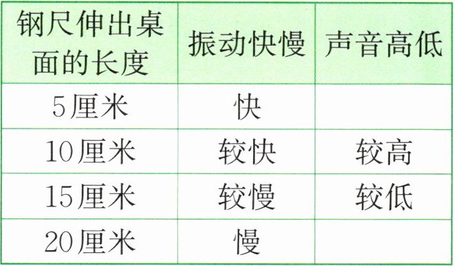3. 某科学小组为了研究声音的变化,将钢尺伸出桌面进行研究,并记录了实验数据。请根据实验记录表回答下列问题。