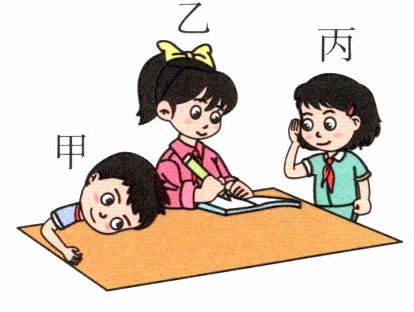 (杭州市拱墅区)如图所示,同学乙在写字,最快听到声音且听得最清楚的同学是(