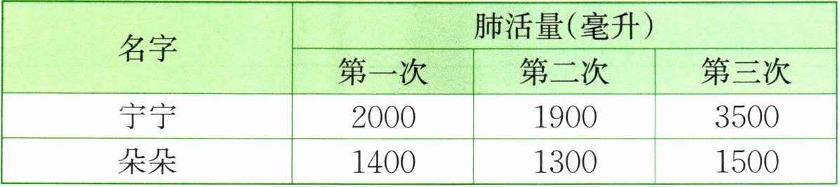 3. 宁宁和朵朵两名四年级女生分别测量了自己的肺活量,记录的结果如下表所示。
