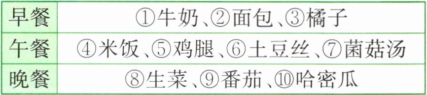 [解析]早餐、午餐中都含有蛋白质、糖类和维生素,晚餐中没有糖类和蛋白质。