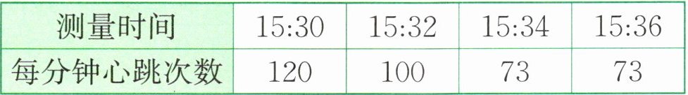 (杭州市临平区)一段时间内小明的每分钟心跳次数记录如下表所示,请根据下表进行分析: