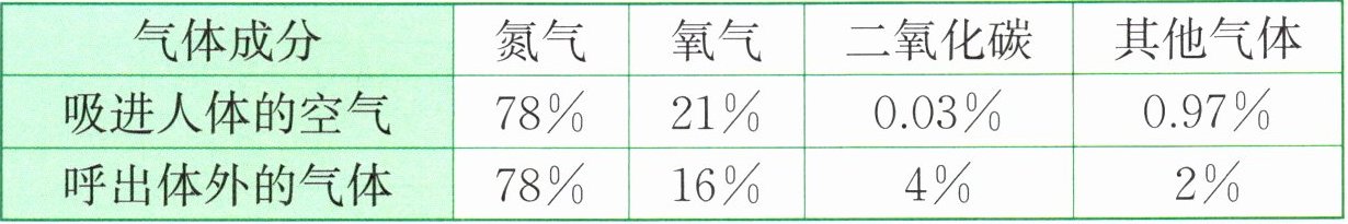 如下表所示为人体呼吸的气体成分对比,请据此回答下列问题。