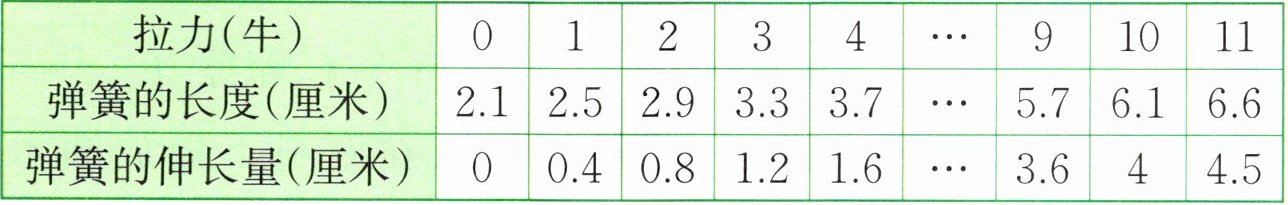 (1)从表中拉力为0~10牛时对应的数据可以看出,拉力和