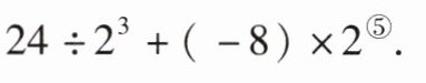 $24÷2^3+(-8)×2^{\circledR5}=24÷8+(-8)×\left(\frac{1}{2}\right)^3=3+(-1)=2$