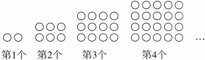 2 [2024西藏中考]如图是由若干个大小相同的“○”组成的一组有规律的图案,其中第1个图案用了2个“○”,第2个图案用了6个“○”,第3个图案用了12个“○”,第4个图案用了20个……“○”依照此规律,第n个图案中“○”的个数为