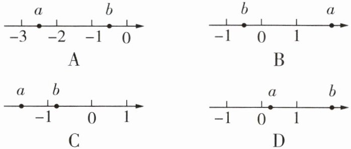 变式如图,数轴上的点分别表示有理数 $ a,b $.若 $ a > b $,则其中表示正确的图形是 (