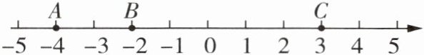 3 如图,在数轴上有 $ A,B,C $ 三个点.
