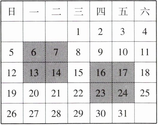 D 由题意可知,左上角的数为a-1,左下角的数为a+6,右下角的数为a+7,所以方框中4个位置的数相加=a+a-1+a+6+a+7=4a+12=4(a+3),结果是4的倍数.