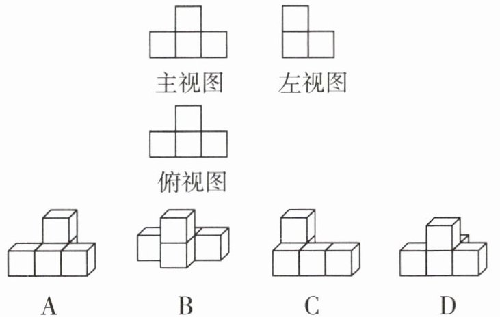 3 如图是由一些完全相同的小正方体搭成的几何体的三视图,这个几何体只能是(