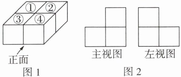 |变式|[2024 宁夏中考]用 5 个大小相同的小正方体搭一个几何体,其主视图、左视图如图 2,现将其中 4 个小正方体按图 1 方式摆放,则最后一个小正方体应放在(