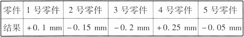 (1)因为|-0.05|<|+0.1|<|-0.15|<|-0.2|<|+0.25|,所以5号零件的大小最符合标准.