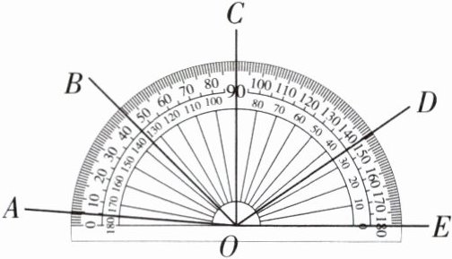 6 将量角器按如图所示的方式放置,其中角度为45°的角是 (