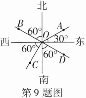 9 如图,若博物馆在点 O 南偏东 60°方向上,则表示博物馆的可能是 (