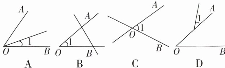 4 [2025 太原晋源区月考]下列四个图中,能用∠1,∠AOB,∠O 三种方法表示同一个角的是 (