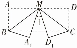 13 [2025 深圳宝安中学开学考试]如图,在长方形纸片 ABCD 中,M 为 AD 边上的一点,将纸片沿 BM,CM 折叠,使点 A 落在点$ A_1 $处,点 D 落在点$ D_1 $处.若∠1 = 30°,则∠BMC 的度数为______.