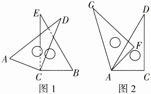 (2)如图 2,将两个同样的直角三角板的 60°锐角的顶点重合在一起,∠DAC = ∠GAF = 60°,求∠GAC + ∠DAF 的度数.