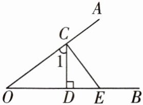 C 因为CE⊥OA,所以∠OCE=90°,所以∠ECD+∠1=90°,所以∠1与∠ECD互余,选项A正确.因为CD⊥OB,所以∠CDO=∠CDE=90°,所以∠DCE+∠OEC=90°.因为∠AOB+∠OEC=90°,所以∠AOB=∠DCE,选项B正确.因为∠1+∠AOB=∠1+∠DCE=∠DCE+∠CED=∠AOB+∠CED=90°,所以题图中共有4对角互余,选项C错误.因为∠1+∠DCE=90°,∠CED+∠DCE=90°,所以∠1=∠CED.因为∠ACD+∠1=180°,∠BEC+∠CED=180°,所以∠ACD=∠BEC,选项D正确.