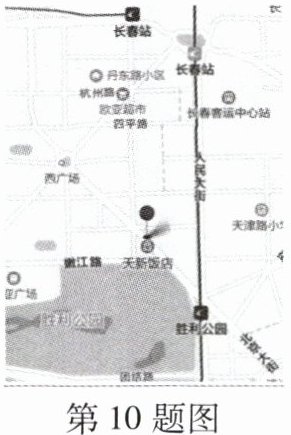 10 [2024 吉林中考]如图,从长春站去往胜利公园,与其他道路相比,走人民大街路程最近,其蕴含的数学道理是