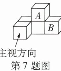 7 [2024 日照中考]如图是由 5 个完全相同的小正方体搭成的几何体,若将小正方体 $ A $ 放置到小正方体 $ B $ 的正上方,则它的三视图变化情况是( )