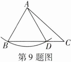 9 [2024 贵州中考]如图,在 $ \triangle ABC $ 中,以点 $ A $ 为圆心,线段 $ AB $ 的长为半径画弧,交 $ BC $ 于点 $ D $,连接 $ AD $. 若 $ AB = 5 $,则 $ AD $ 的长为______