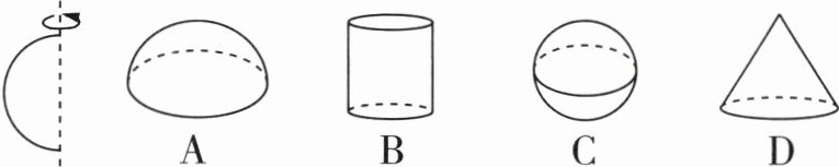 1 [2024 陕西中考 A 卷]如图,将半圆绕直径所在的虚线旋转一周,得到的立体图形是(
