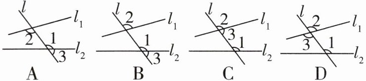 11 如图,直线$l_1$与$l_2$被直线l所截,则下列∠1的同位角∠2,∠1的同旁内角∠3标注正确的是(