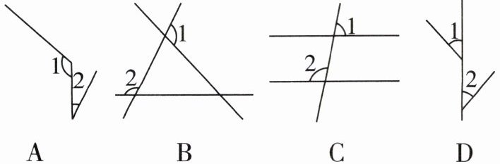 1 如图是电子屏幕上显示的数字“9”,图中与∠2是同位角的是(