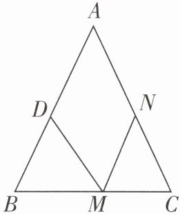 14 推理能力 [2025海东期末]如图,在$\triangle ABC$中,$\angle B= \angle C$,$BC= 10\ cm$,点$D在AB$上,$BD= 6\ cm$,点$M从点B出发以1\ cm/s的速度向点C$运动,同时,点$N从C出发向点A$运动,设运动时间为$t\ s$,连接$DM$,$MN$.