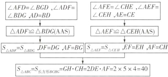 S△ABC=S长方形BCHG=GH·CH=2DE·AF=2×5×4=40