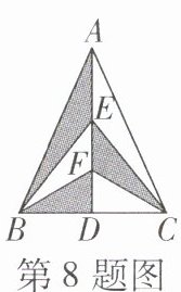 8 如图,在△ABC中,AB= AC,AD是∠BAC的平分线,AD= 8cm,BC= 6cm,点E,F是AD上的两点,则图中阴影部分的面积是