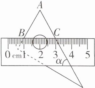 7 [2025 松原宁江区期中]将含$30^{\circ}$角的直角三角尺和直尺按如图所示的方式放置,已知$\angle \alpha = 60^{\circ}$,点$B$,$C表示的刻度分别为1\mathrm{cm}$,$3\mathrm{cm}$,则线段$AB$的长为