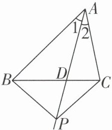 D.若 $PB = PC$,$\angle 1 = \angle 2$,则 $AB = AC$