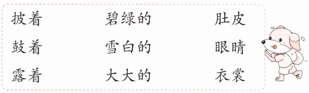 (1)每天回家时,小狗都会( )上来对我摇尾巴。