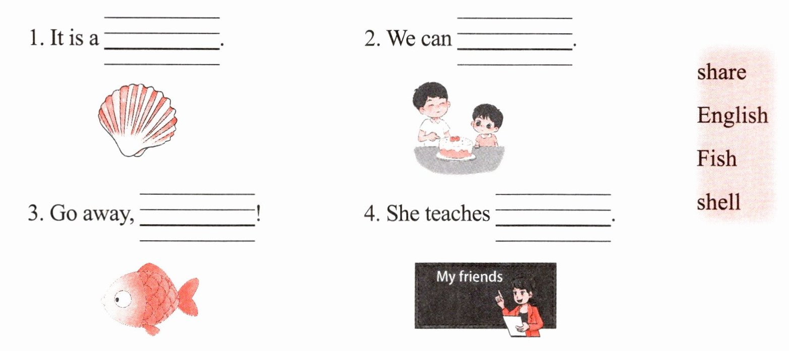 1. shell 2. share 3. Fish 4. English
