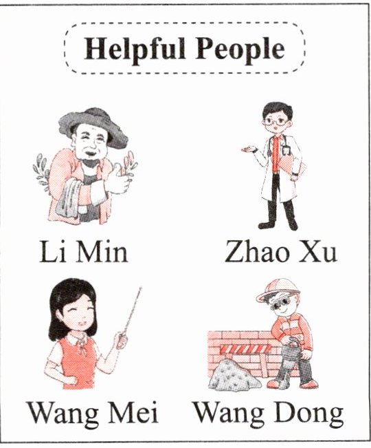 1. farmer 2. doctor 3. teacher 4. factory worker