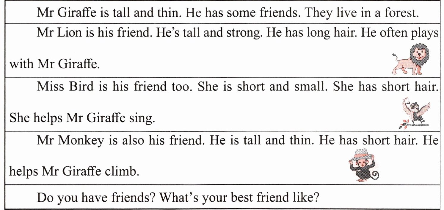 3. Mr Monkey C. tall and strong c. helps Mr Giraffe climb