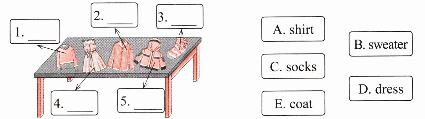 ) 4. On a snowy day, I don't wear a ______.A. sweater B. coat C. dress