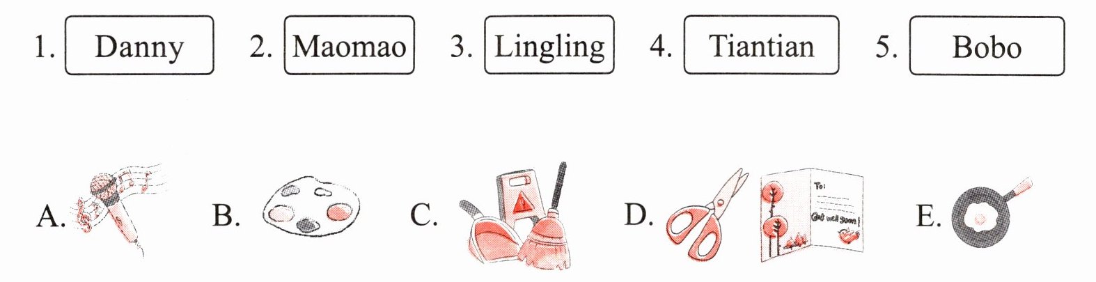 The Double Ninth Festival is coming. My classmates are busy. What can they do for their grandparents? Danny can clean the rooms for them. Maomao can draw some nice pictures for them. Lingling can cook for them. Tiantian can make cards for them. How about Bobo? He can sing for them!