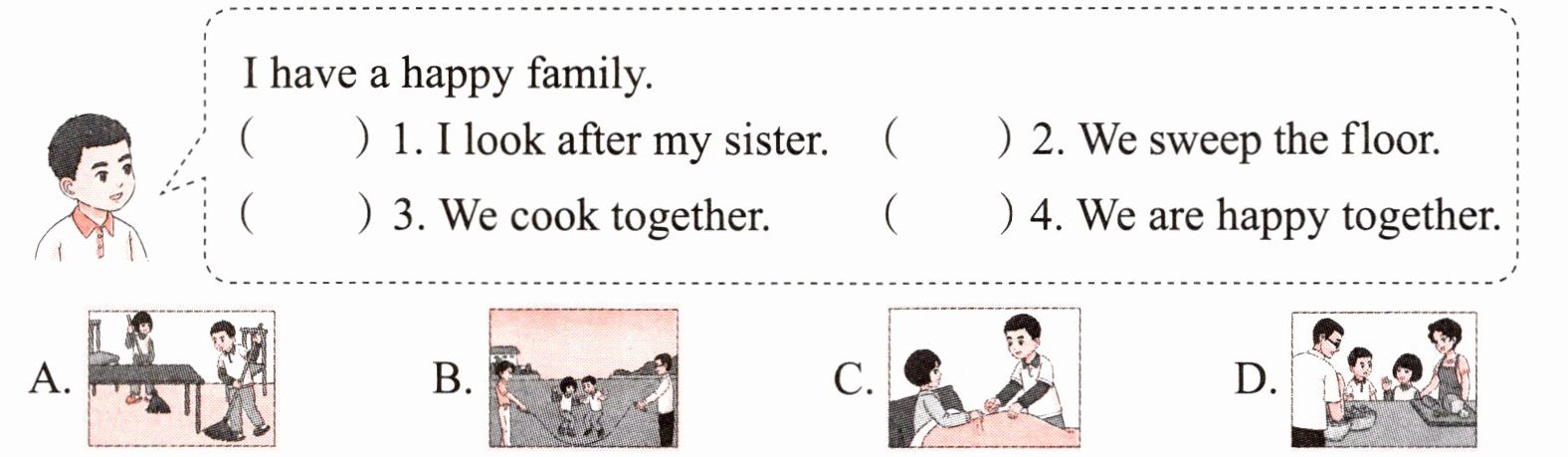 二、吴斌斌很爱他的家人,一起看看他们会做什么吧!请读一读,并选择正确的图片。