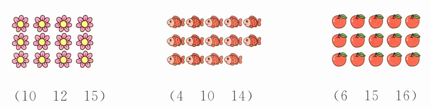 先圈出$10$个花(圈的方式不唯一),再数剩下的花有$2$个,所以花的总数是$10 + 2=12$个,故圈$12$。
