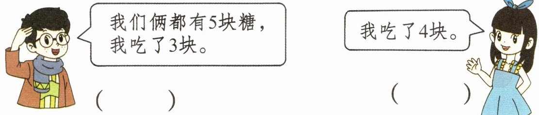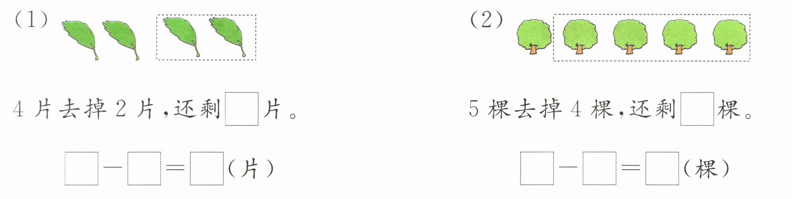 先画$5$个$\triangle$:$\triangle\triangle\triangle\triangle\triangle$,再划去$4$个$\triangle$:$\triangle\underline{\triangle\triangle\triangle\triangle}$,剩下$1$个$\triangle$,所以$5 - 4=1$。