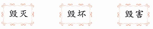 1. 毁坏 2. 毁害 3. 毁灭 4. 壮阔 5. 壮丽 6. 壮观